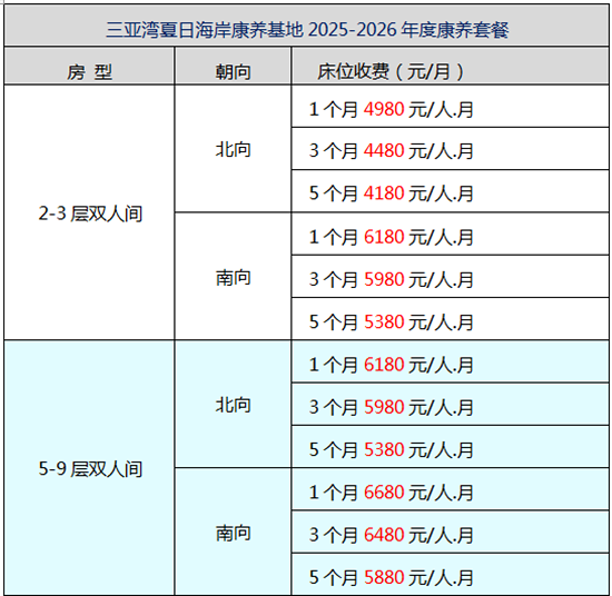 三亚湾夏日海岸康养基地2025-2026年度价格