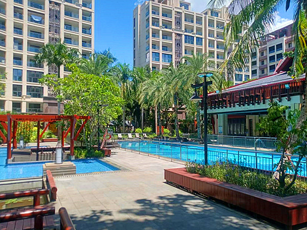 基地位于三亚海棠湾南田温泉国际热带风情旅游城神泉大道6号华悦海棠社区A栋,社区占地面积约12.8万平方米,容积率1.2,绿化率达40%,主打精装修康养旅居住宅,房型有60平米豪华双人间、98平米两居室三居室,户户家电配套一应俱全。社区配有两个室外游泳池、温泉池、儿童乐园、棋牌室、乒乓球、台球、室内室外健身器材、健康中心中医问诊等文体娱乐配套齐全。